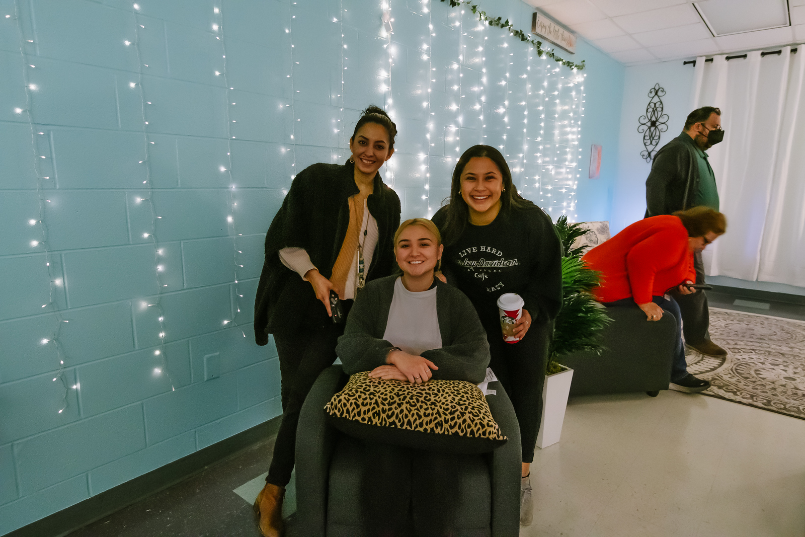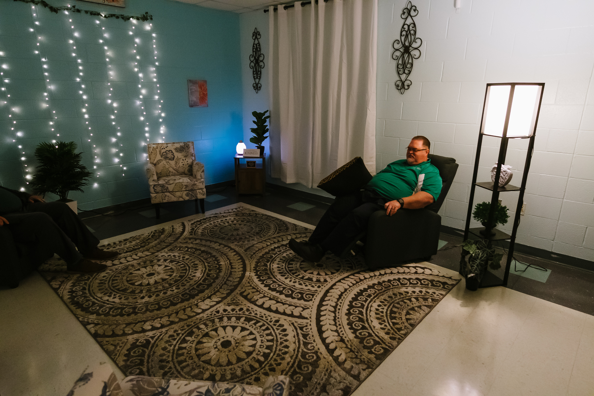 “Sé que los maestros tienen mucho trabajo”, dijo Almaguer. “No puedo garantizar que su trabajo desaparezca, pero espero que este espacio pueda ayudar a que se sientan mejor. Comenzamos a pintar las paredes en septiembre, cuando terminamos, pude limpiar todo y comenzar a colocar los muebles en su lugar y luego comencé a poner decoraciones en la pared. Pero se siente bien estar aquí. Es muy tranquilo.